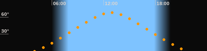 | Höchster Stand (Kulmination) | 12:51 Uhr (h = 67,8°) |