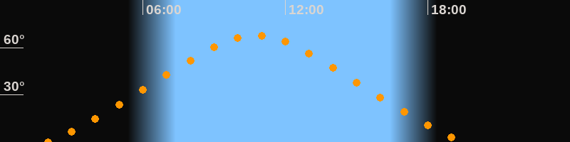| Höchster Stand (Kulmination) | 10:45 Uhr (h = 67,8°) |