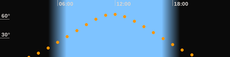 | Höchster Stand (Kulmination) | 11:49 Uhr (h = 67,8°) |