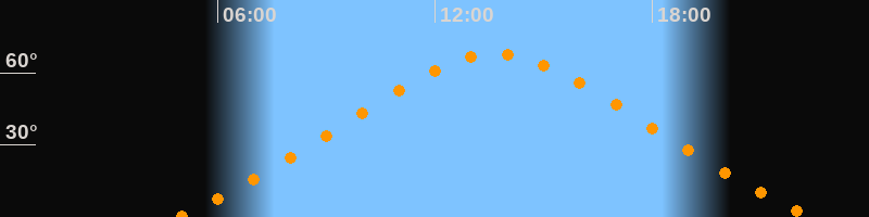| Höchster Stand (Kulmination) | 13:40 Uhr (h = 67,8°) |