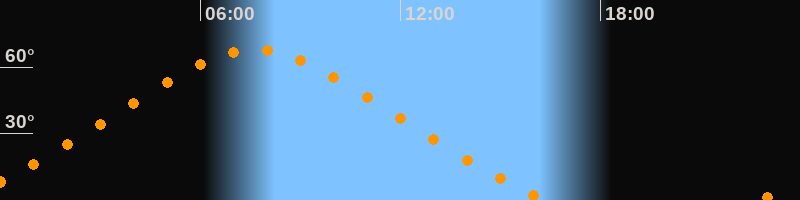 | Höchster Stand (Kulmination) | 07:37 Uhr (h = 67,8°) |