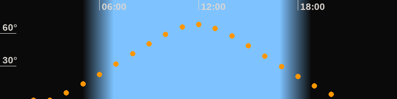 | Höchster Stand (Kulmination) | 11:53 Uhr (h = 67,8°) |