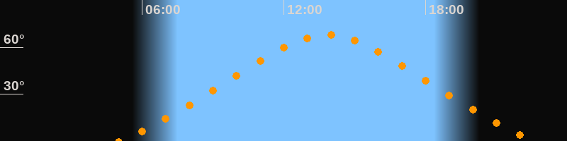 | Höchster Stand (Kulmination) | 13:49 Uhr (h = 67,8°) |