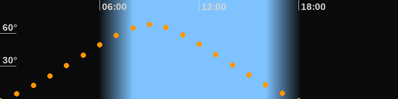 | Höchster Stand (Kulmination) | 09:01 Uhr (h = 67,8°) |