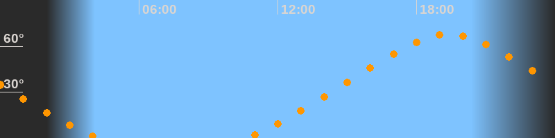 | Höchster Stand (Kulmination) | 19:23 Uhr (h = 67,8°) |