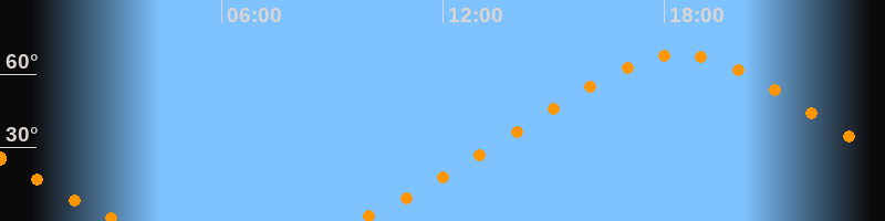 | Höchster Stand (Kulmination) | 18:25 Uhr (h = 67,8°) |