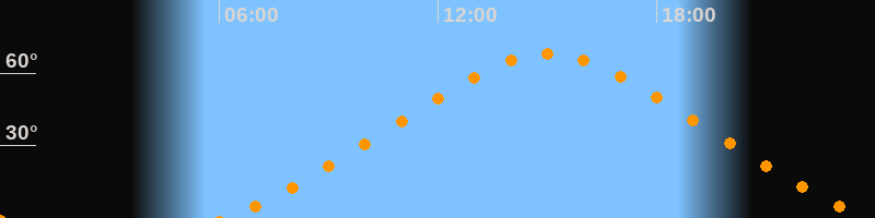 | Höchster Stand (Kulmination) | 15:00 Uhr (h = 67,8°) |