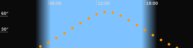 | Höchster Stand (Kulmination) | 13:18 Uhr (h = 67,8°) |