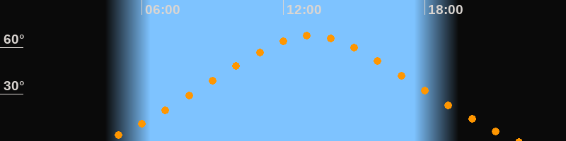 | Höchster Stand (Kulmination) | 13:10 Uhr (h = 67,8°) |