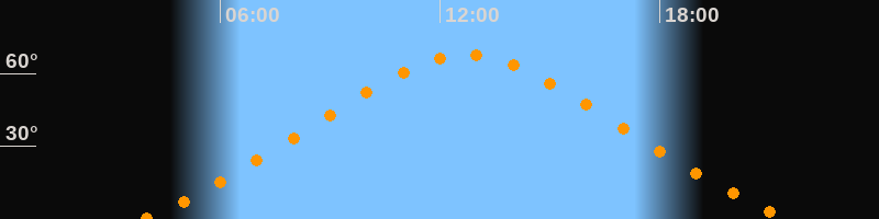 | Höchster Stand (Kulmination) | 12:42 Uhr (h = 67,8°) |