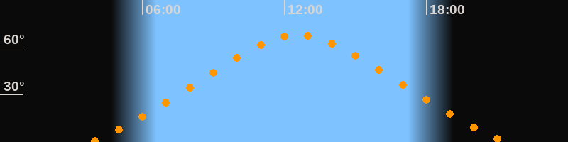 | Höchster Stand (Kulmination) | 12:35 Uhr (h = 67,8°) |