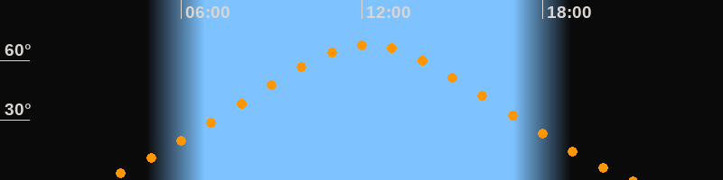 | Höchster Stand (Kulmination) | 12:11 Uhr (h = 67,8°) |