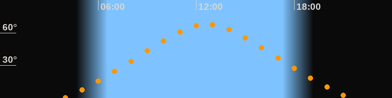 | Höchster Stand (Kulmination) | 12:39 Uhr (h = 67,8°) |