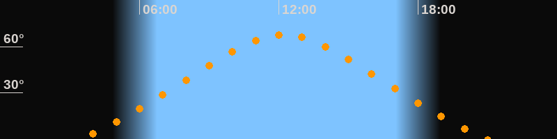 | Höchster Stand (Kulmination) | 12:12 Uhr (h = 67,8°) |