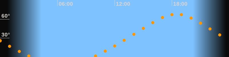 | Höchster Stand (Kulmination) | 18:26 Uhr (h = 67,8°) |