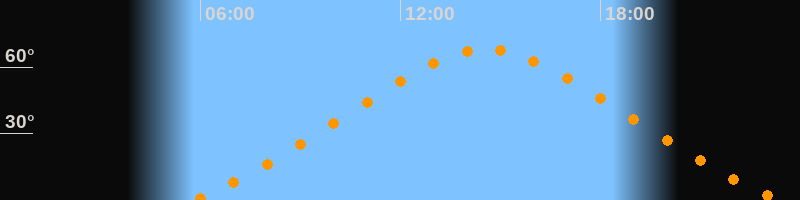 | Höchster Stand (Kulmination) | 14:34 Uhr (h = 67,8°) |