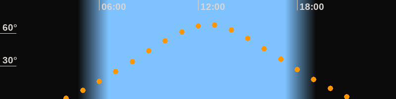 | Höchster Stand (Kulmination) | 12:36 Uhr (h = 67,8°) |