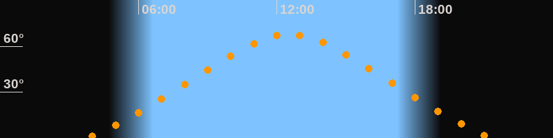 | Höchster Stand (Kulmination) | 12:33 Uhr (h = 67,8°) |