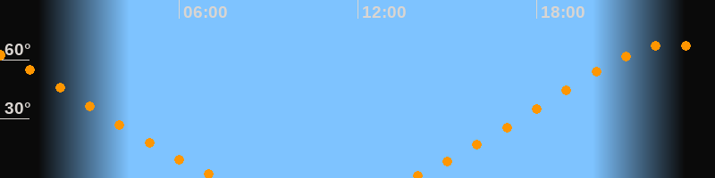 | Aufgang | 13:40 Uhr im Nordosten (αAz = 39,9°) |