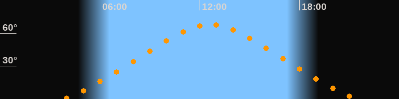 | Höchster Stand (Kulmination) | 12:37 Uhr (h = 67,8°) |
