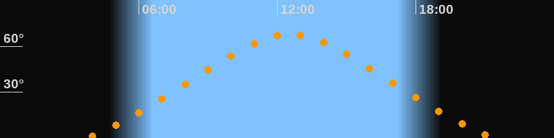 | Höchster Stand (Kulmination) | 12:34 Uhr (h = 67,8°) |