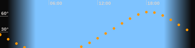 | Höchster Stand (Kulmination) | 18:21 Uhr (h = 67,8°) |