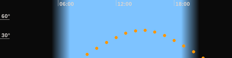 | Höchster Stand (Kulmination) | 14:42 Uhr (h = 43,3°) |