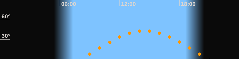 | Höchster Stand (Kulmination) | 14:30 Uhr (h = 43,3°) |