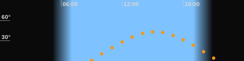 | Höchster Stand (Kulmination) | 15:11 Uhr (h = 43,3°) |