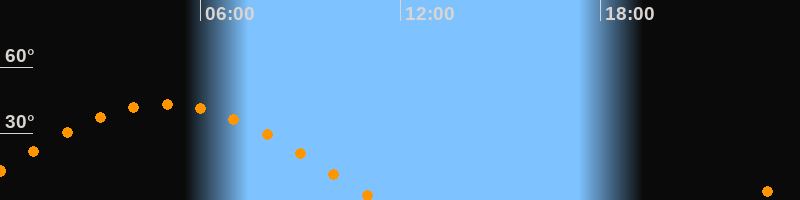 | Höchster Stand (Kulmination) | 04:56 Uhr (h = 43,3°) |