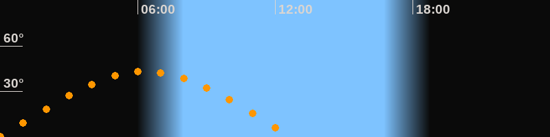 | Höchster Stand (Kulmination) | 06:20 Uhr (h = 43,3°) |