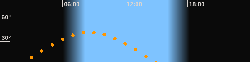 | Höchster Stand (Kulmination) | 08:34 Uhr (h = 43,3°) |