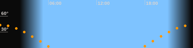 | Untergang | 06:22 Uhr im Westen (αAz = 277°) |