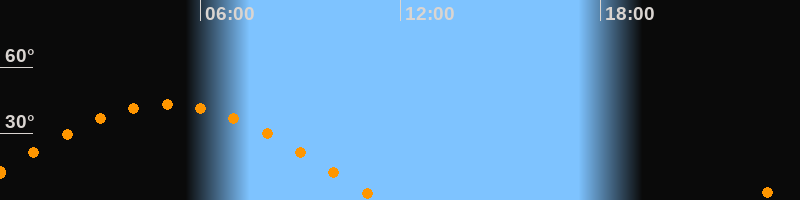 | Untergang | 11:22 Uhr im Westen (αAz = 277°) |