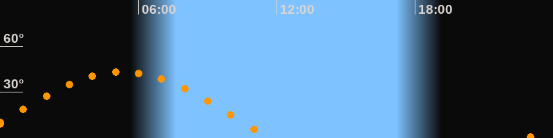 | Höchster Stand (Kulmination) | 05:18 Uhr (h = 43,3°) |