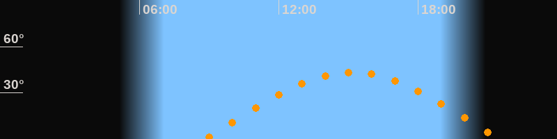 | Höchster Stand (Kulmination) | 15:09 Uhr (h = 43,3°) |