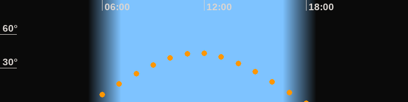 | Höchster Stand (Kulmination) | 11:36 Uhr (h = 43,3°) |
