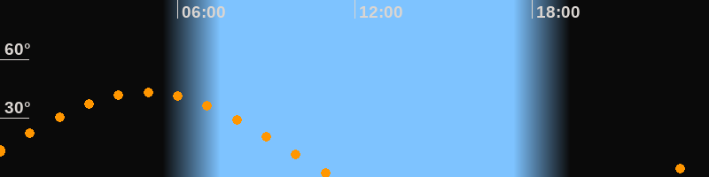 | Höchster Stand (Kulmination) | 04:55 Uhr (h = 43,3°) |