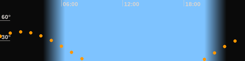 Höchster Stand (Kulmination)02:04 Uhr (h = 43,3°)