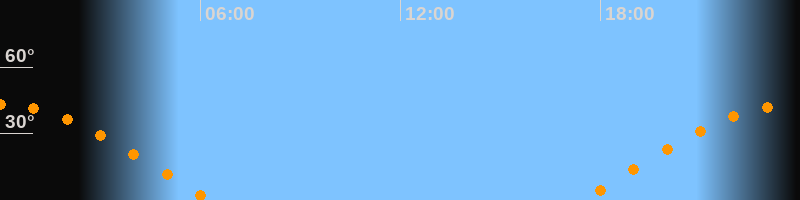 | Untergang | 06:16 Uhr im Westen (αAz = 277°) |