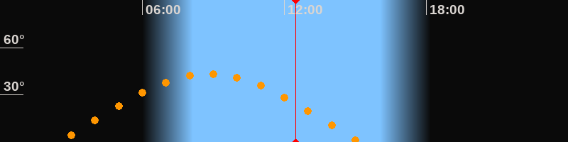 | Höchster Stand (Kulmination) | 08:49 Uhr (h = 43,3°) |