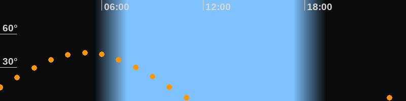 | Höchster Stand (Kulmination) | 05:02 Uhr (h = 43,3°) |