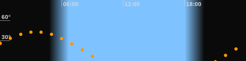 | Höchster Stand (Kulmination) | 03:27 Uhr (h = 43,3°) |