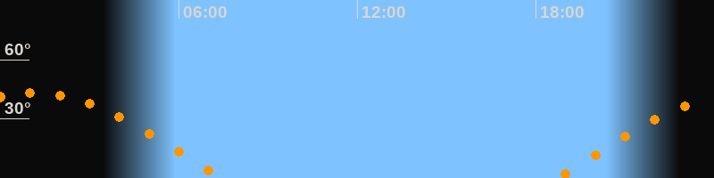 | Aufgang | 18:41 Uhr im Osten (αAz = 83°) |
