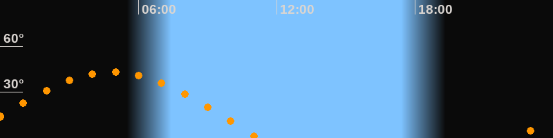 | Höchster Stand (Kulmination) | 04:51 Uhr (h = 43,3°) |