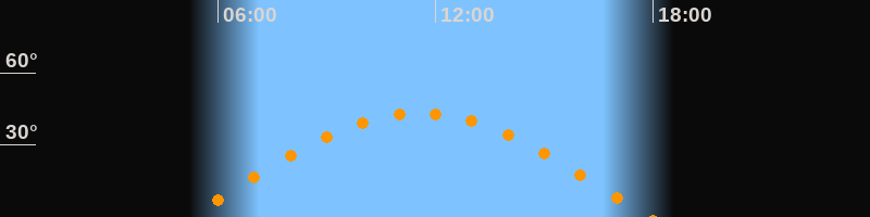 | Höchster Stand (Kulmination) | 11:33 Uhr (h = 43,3°) |