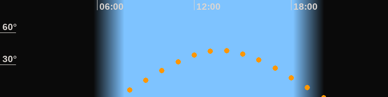 | Höchster Stand (Kulmination) | 13:37 Uhr (h = 43,3°) |