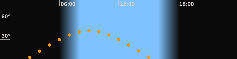 | Höchster Stand (Kulmination) | 09:00 Uhr (h = 43,3°) |