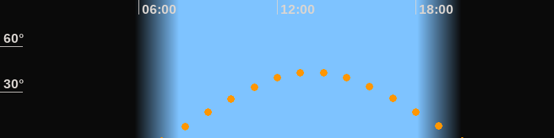 | Höchster Stand (Kulmination) | 13:31 Uhr (h = 43,3°) |