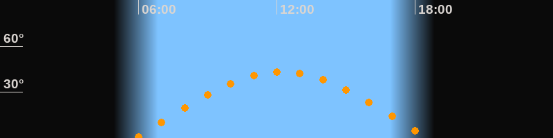 | Höchster Stand (Kulmination) | 12:13 Uhr (h = 43,3°) |